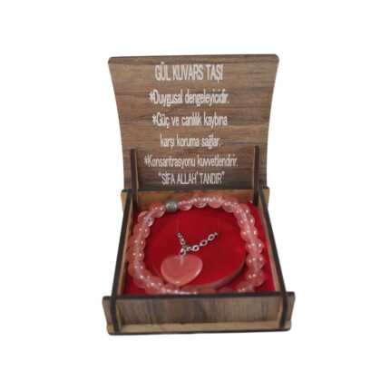 Gül Kuvars Taşı Kolye – Bileklik Seti